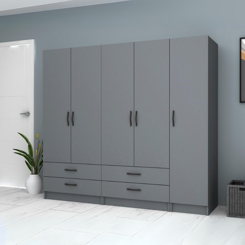 Ντουλάπα ρούχων Ricardo Megapap πεντάφυλλη χρώμα ανθρακί 200×61,8×181εκ.