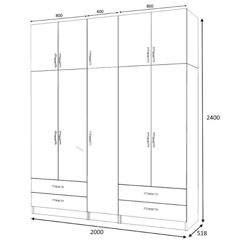 - Διαστάσεις ντουλάπας: Μήκος 200 x Βάθος 51,8 x Ύψος 240 εκ.
