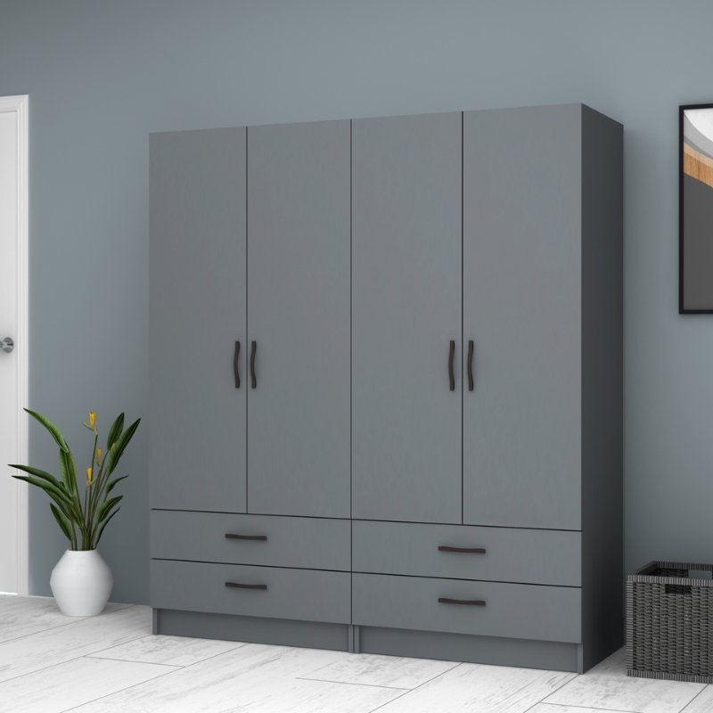 Ντουλάπα ρούχων Ricardo Megapap τετράφυλλη χρώμα ανθρακί 160×61,8×181εκ.