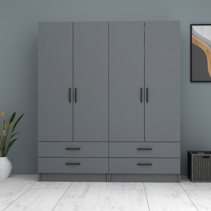 Ντουλάπα ρούχων Ricardo Megapap τετράφυλλη χρώμα ανθρακί 160×51,8×181εκ.