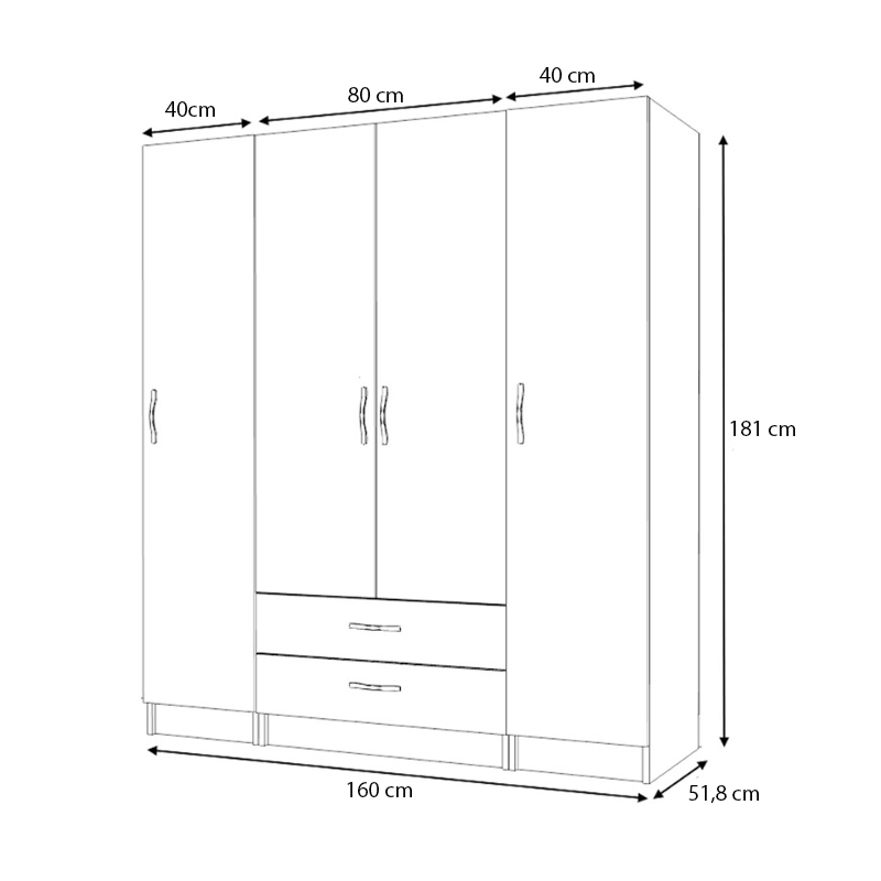 • Διαστάσεις ντουλάπας: Μήκος 160 x Βάθος 51,8 x Ύψος 181 εκ.