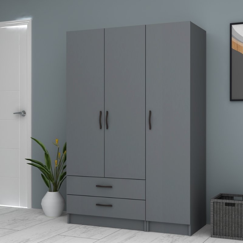Ντουλάπα ρούχων Ricardo Megapap τρίφυλλη χρώμα ανθρακί 120×61,8×181εκ.