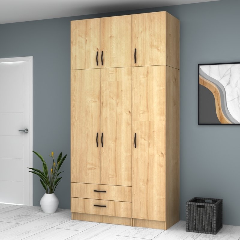 Αρχική σελίδα Έπιπλα εσωτερικού χώρου Ντουλάπες ρούχων Ντουλάπα ρούχων Ricardo Megapap τρίφυλλη με πατάρι χρώμα φυσικό οξιάς 120×51,8×240εκ.