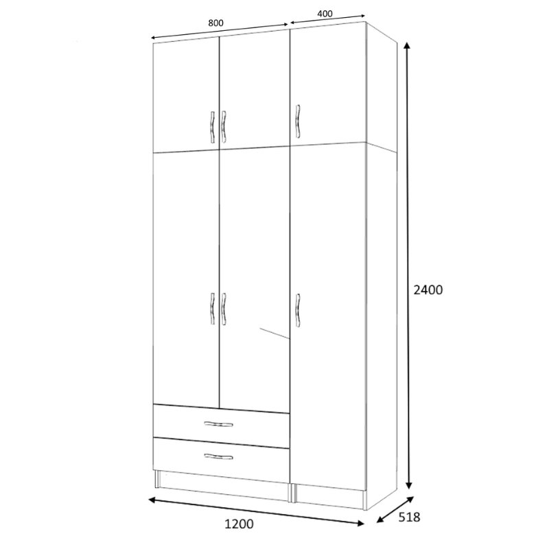 - Διαστάσεις ντουλάπας: Μήκος 120 x Βάθος 51,8 x Ύψος 240 εκ.