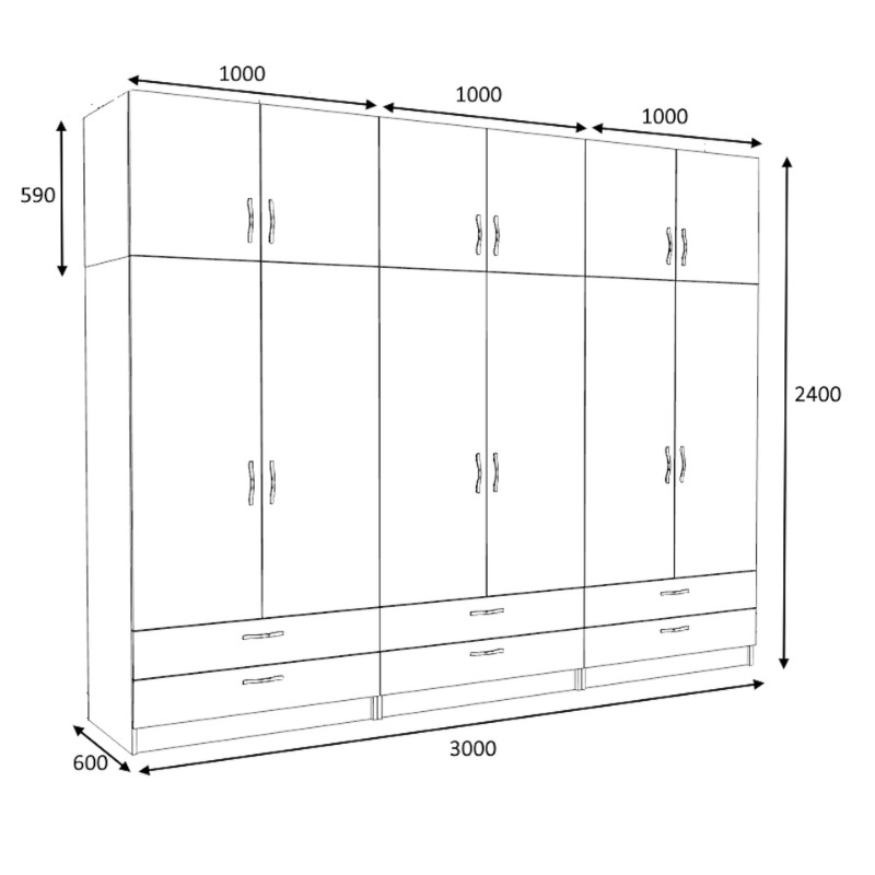 • Διαστάσεις ντουλάπας: Μήκος 300 x Βάθος 60 x Ύψος 240 εκ.