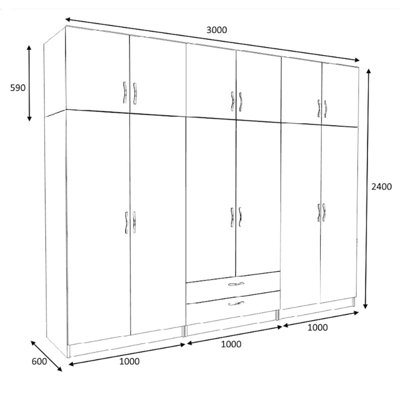 - Διαστάσεις ντουλάπας: Μήκος 300 x Βάθος 60 x Ύψος 240 εκ.