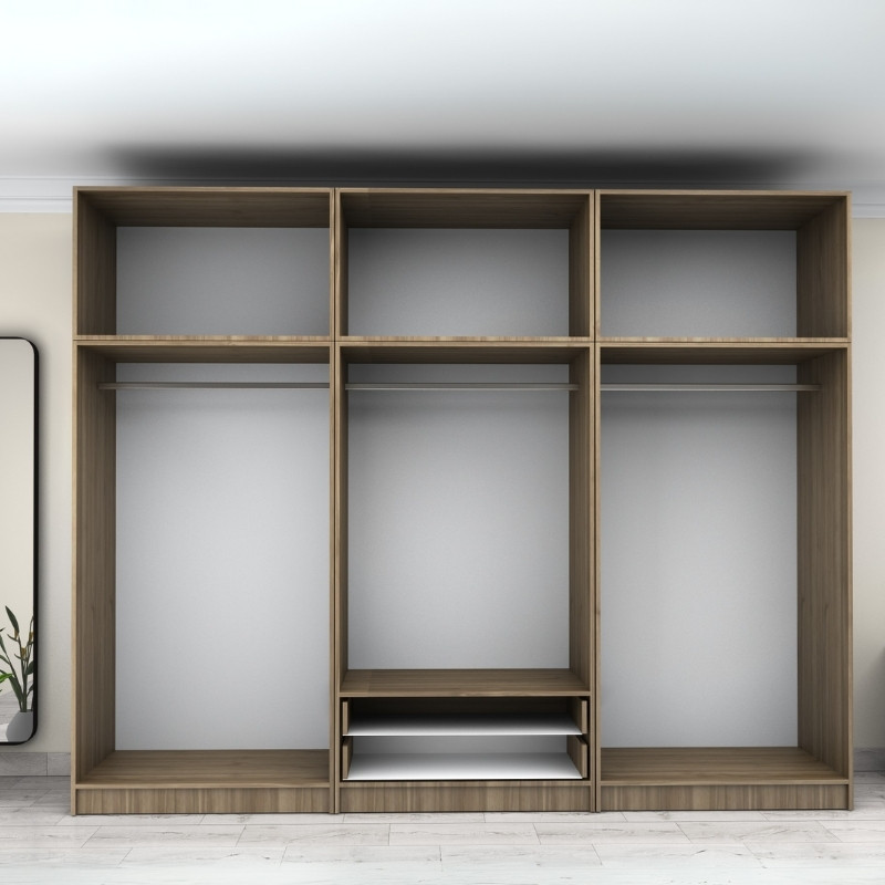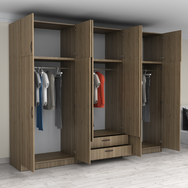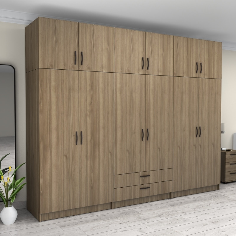 Ντουλάπα ρούχων Victoria Megapap εξάφυλλη με πατάρι και συρτάρια χρώμα καρυδί 300x60x240εκ.
