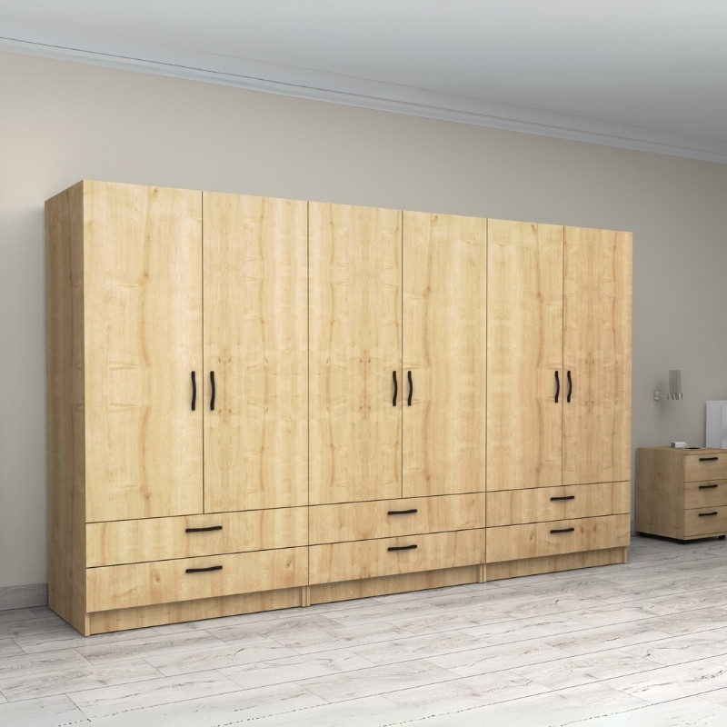 Ντουλάπα ρούχων Victoria Megapap εξάφυλλη με συρτάρια χρώμα φυσικό οξιάς 300x60x181εκ.