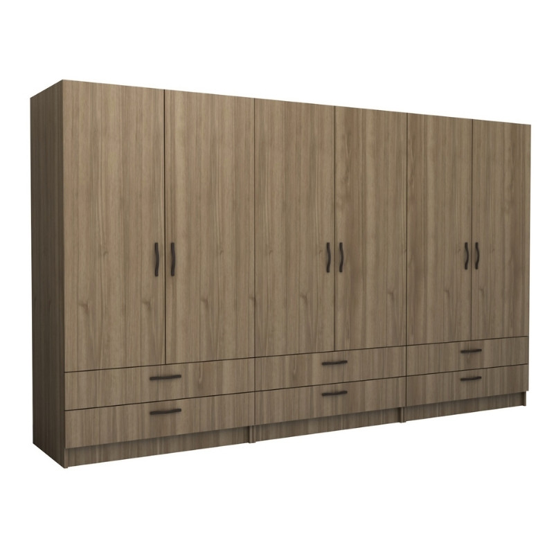 Ντουλάπα ρούχων Victoria Megapap εξάφυλλη με συρτάρια χρώμα καρυδί 300x60x181εκ.
