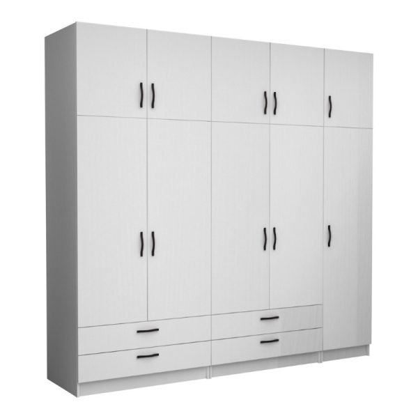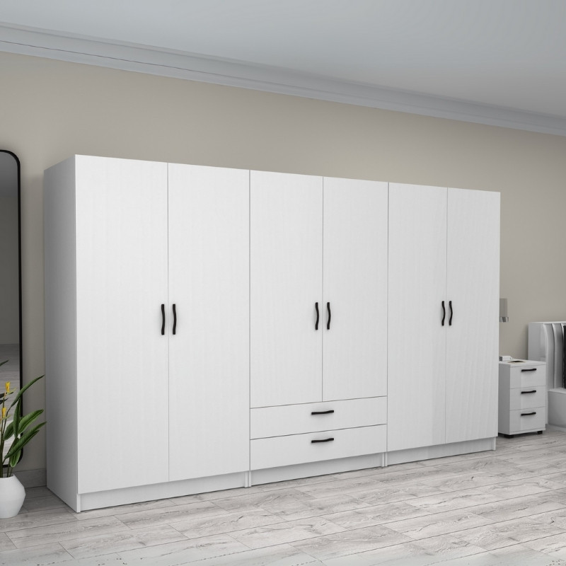 Ντουλάπα ρούχων Victoria Megapap εξάφυλλη με συρτάρια χρώμα λευκό 300x60x181εκ.