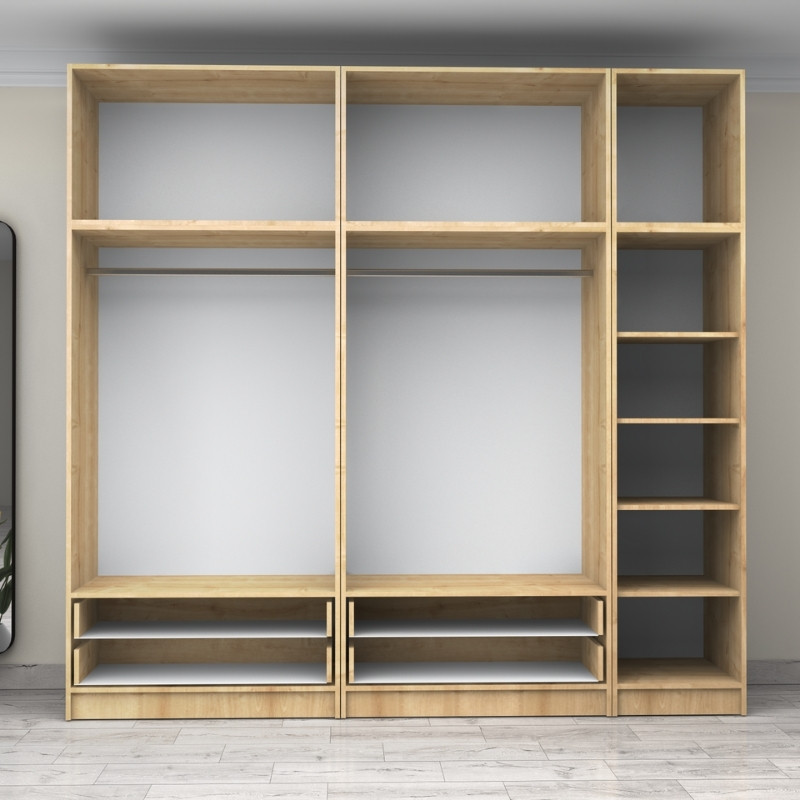 Ντουλάπα ρούχων Victoria Megapap πεντάφυλλη με πατάρι και συρτάρια χρώμα φυσικό οξιάς 250x60x240εκ.
