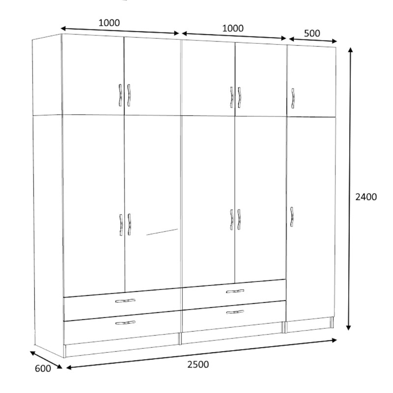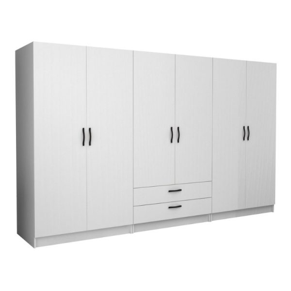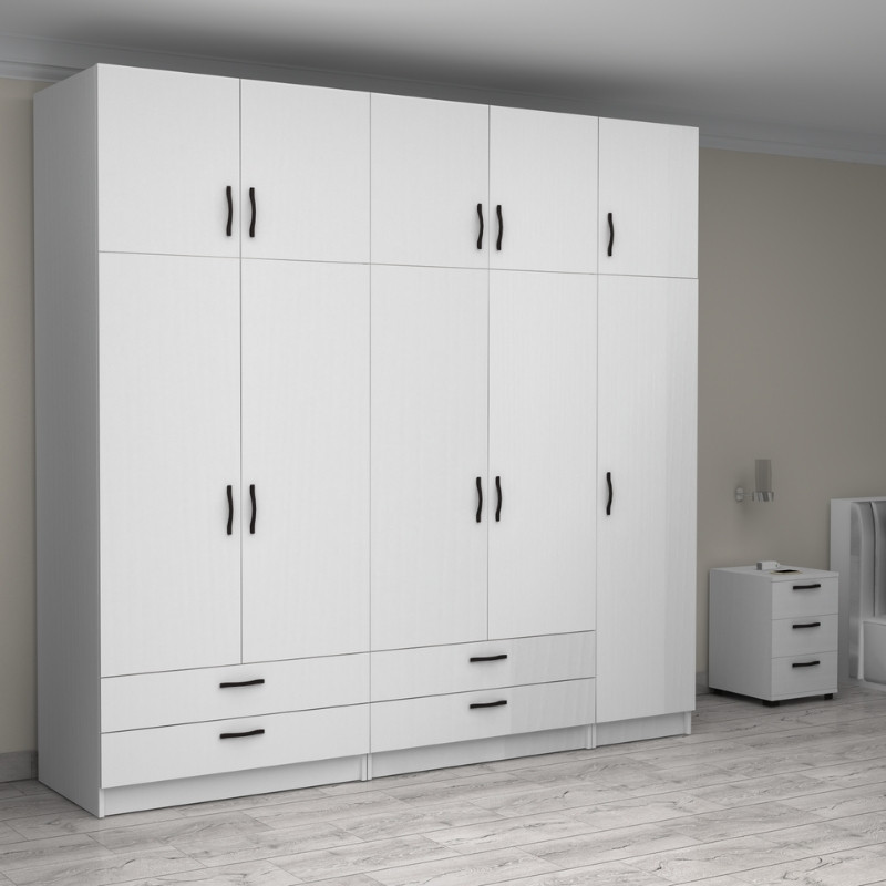 Ντουλάπα ρούχων Victoria Megapap πεντάφυλλη με πατάρι και συρτάρια χρώμα λευκό 250x60x240εκ.