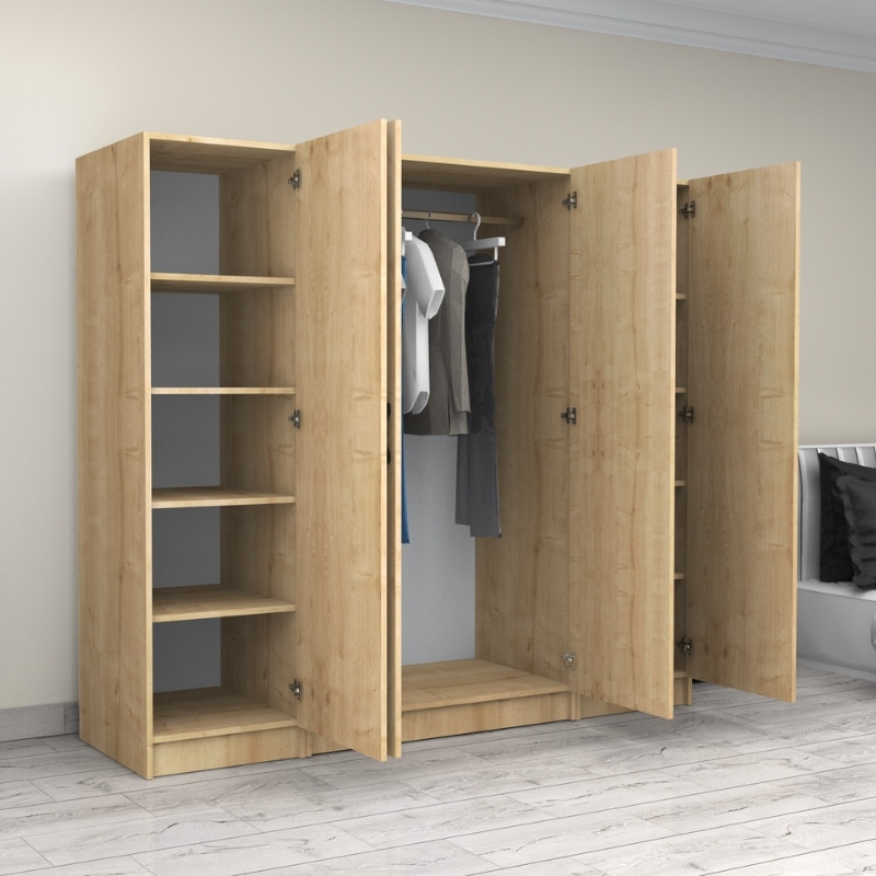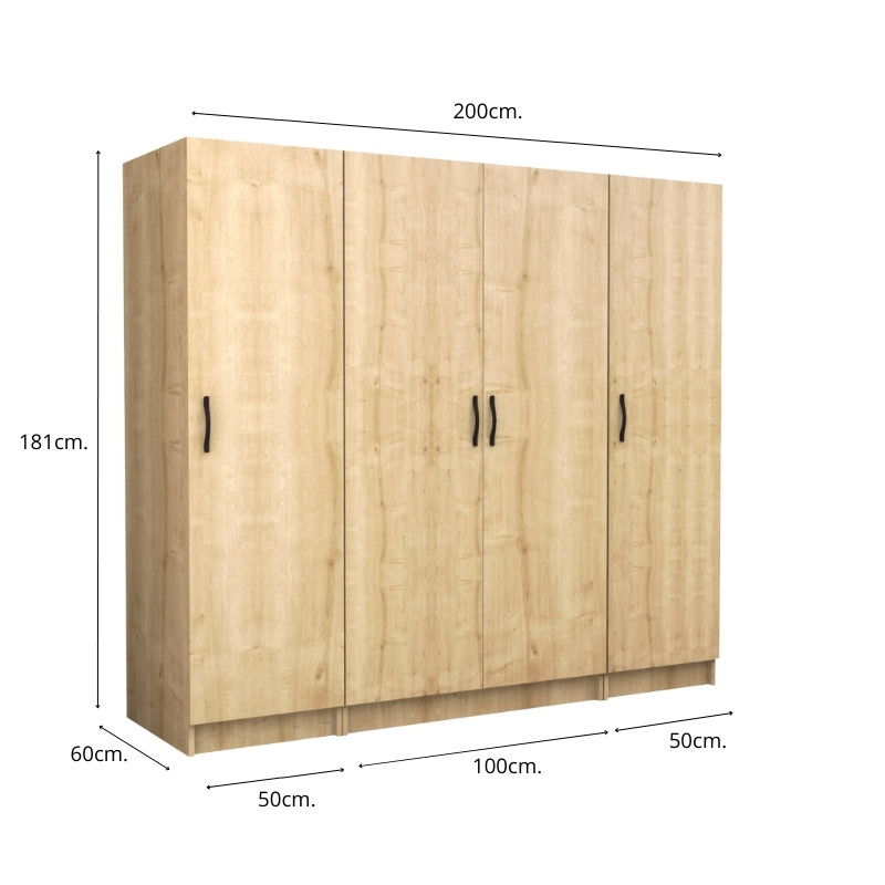 Ντουλάπα ρούχων Victoria Megapap τετράφυλλη χρώμα φυσικό οξιάς 200x60x181εκ.