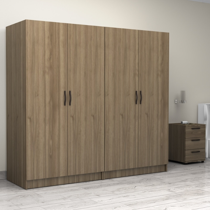 Ντουλάπα ρούχων Victoria Megapap τετράφυλλη χρώμα καρυδί 200x60x181εκ.