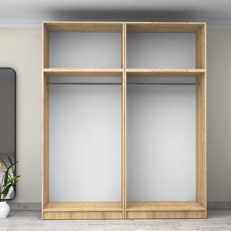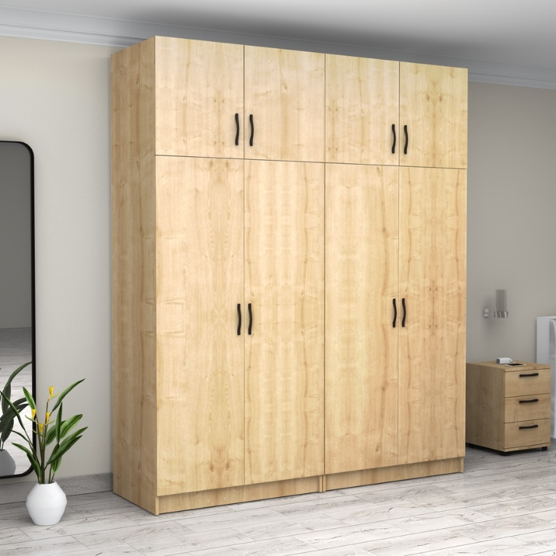 Ντουλάπα ρούχων Victoria Megapap τετράφυλλη με πατάρι χρώμα φυσικό οξιάς 200x60x240εκ.