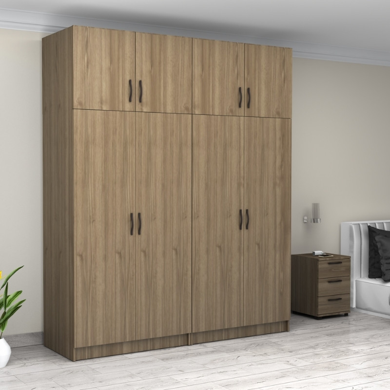 Ντουλάπα ρούχων Victoria Megapap τετράφυλλη με πατάρι χρώμα καρυδί 200x60x240εκ.