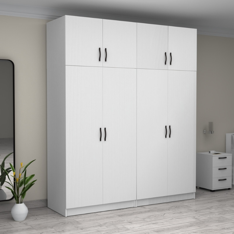 Ντουλάπα ρούχων Victoria Megapap τετράφυλλη με πατάρι χρώμα λευκό 200x60x240εκ.