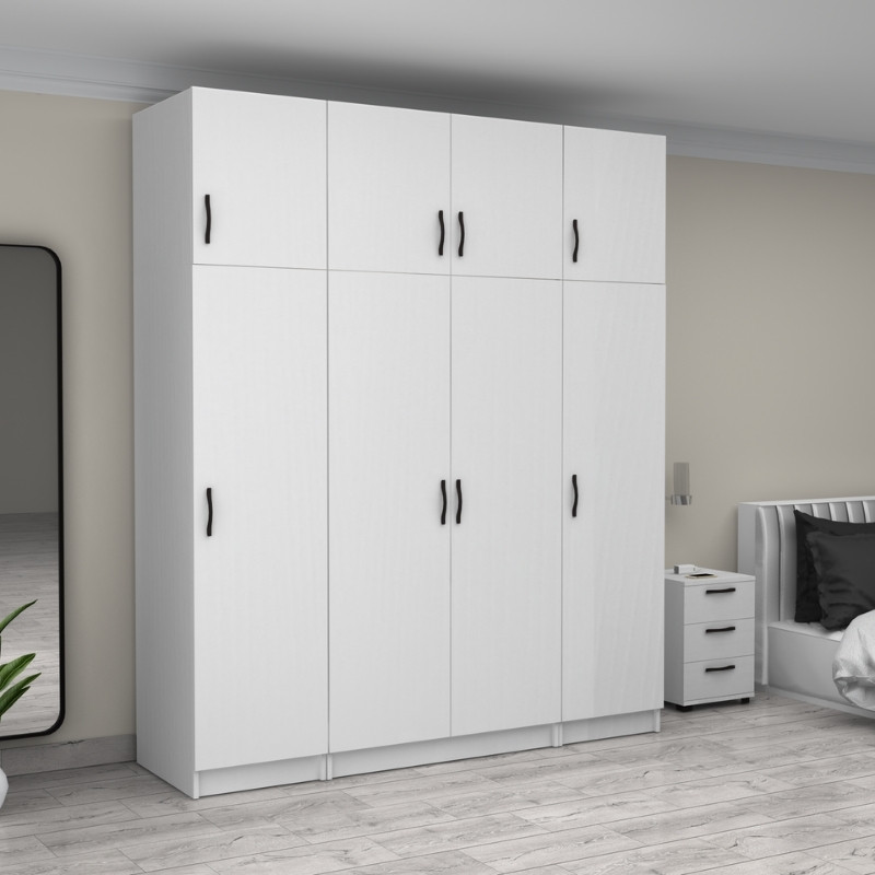 Ντουλάπα ρούχων Victoria Megapap τετράφυλλη με πατάρι χρώμα λευκό 200x60x240εκ.