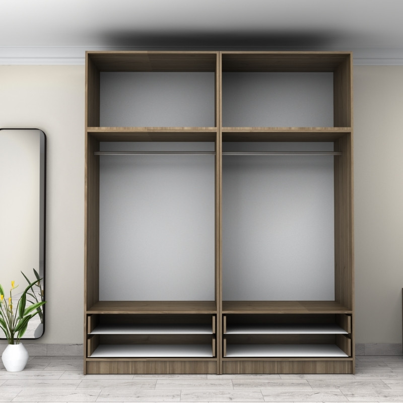 - Στο εσωτερικό της φέρει δύο μεταλλικές βέργες για κρεμάστρες για μεγαλύτερη αποθήκευση. Στο κάτω μέρος φέρει τέσσερα πρακτικά συρόμενα συρτάρια.