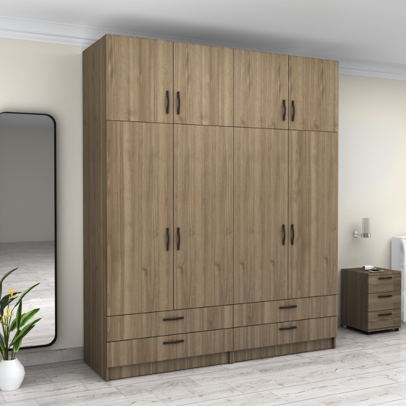 Ντουλάπα ρούχων Victoria Megapap τετράφυλλη με πατάρι και συρτάρια χρώμα καρυδί 200x60x240εκ.