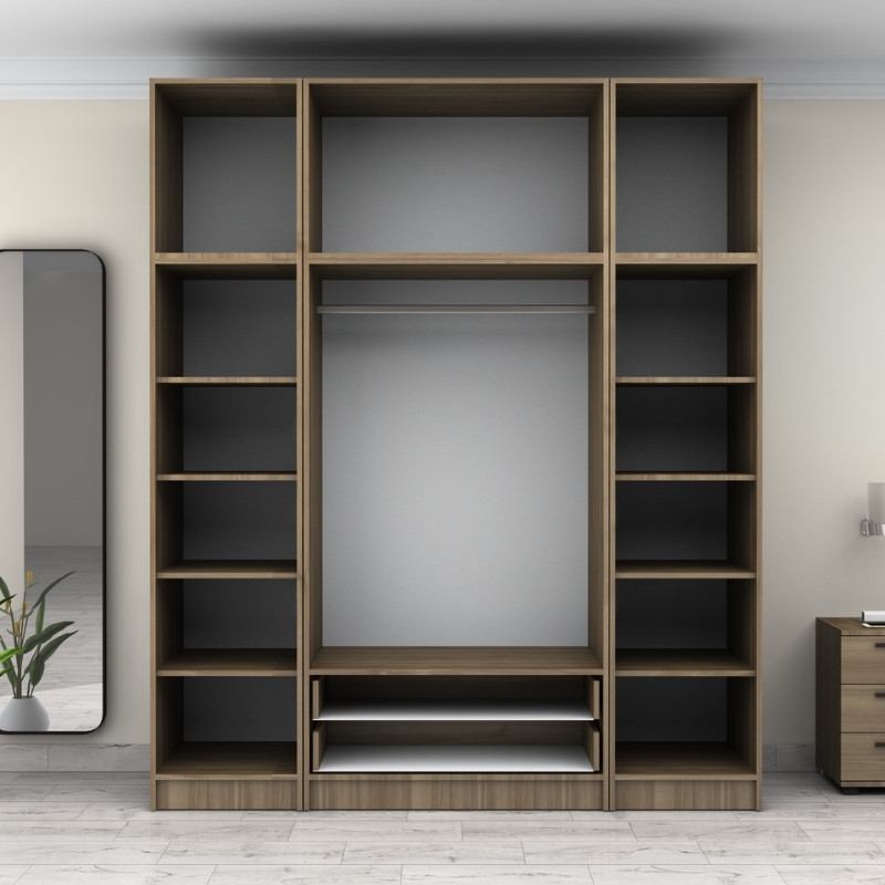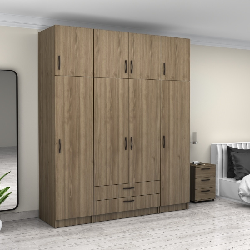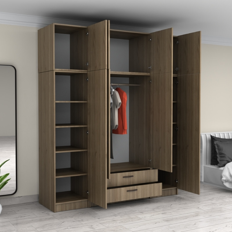 Ντουλάπα ρούχων Victoria Megapap τετράφυλλη με πατάρι και συρτάρια χρώμα καρυδί 200x60x240εκ.