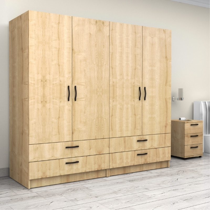 Ντουλάπα ρούχων Victoria Megapap τετράφυλλη με συρτάρια χρώμα φυσικό οξιάς 200x60x181εκ.