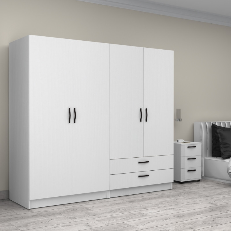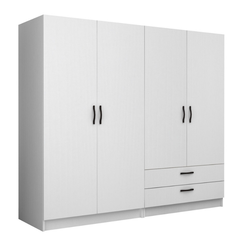 Ντουλάπα ρούχων Victoria Megapap τετράφυλλη με συρτάρια χρώμα λευκό 200x60x181εκ.