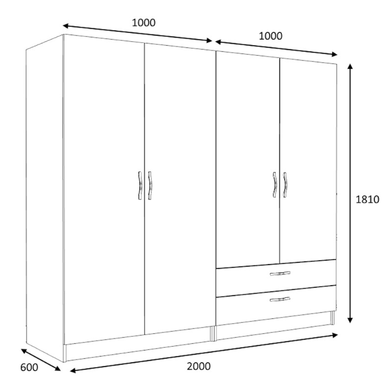 • Διαστάσεις ντουλάπας: Μήκος 200 x Βάθος 60 x Ύψος 181 εκ.