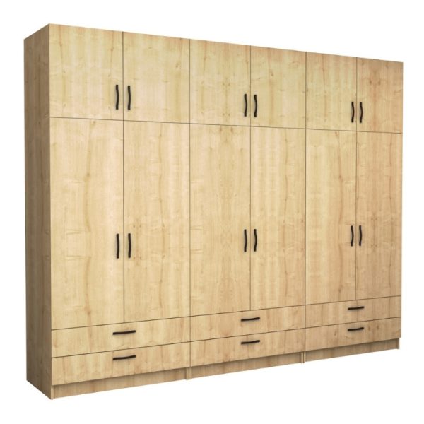 Ντουλάπα ρούχων Victoria Megapap εξάφυλλη με πατάρι και συρτάρια χρώμα φυσικό οξιάς 300x60x240εκ. €1,026.00 Original price was: €1,026.00.€870.00Η τρέχουσα τιμή είναι: €870.00.