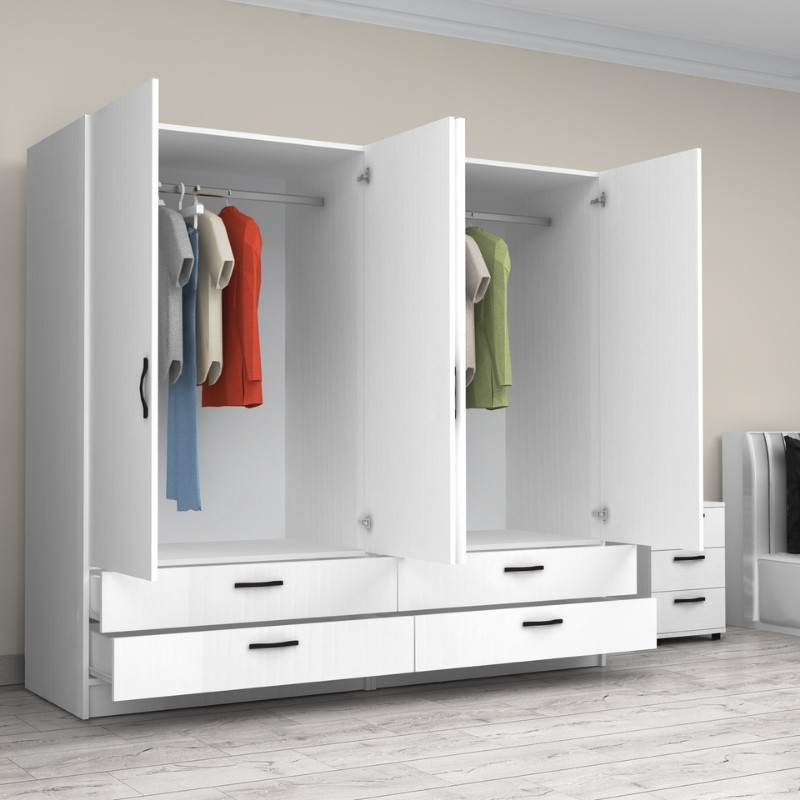 Ντουλάπα ρούχων Victoria Megapap τετράφυλλη με συρτάρια χρώμα λευκό 200x60x181εκ.