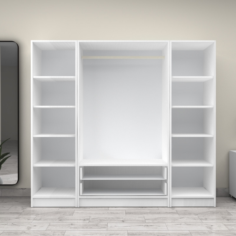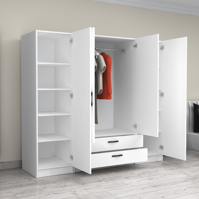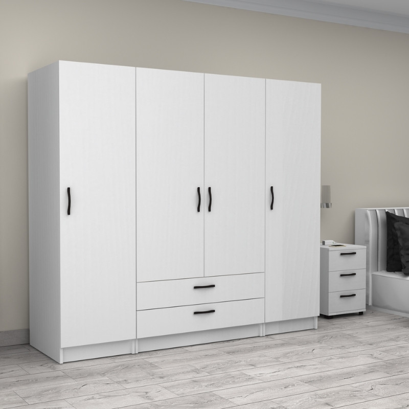 Ντουλάπα ρούχων Victoria Megapap τετράφυλλη με συρτάρια χρώμα λευκό 200x60x181εκ.