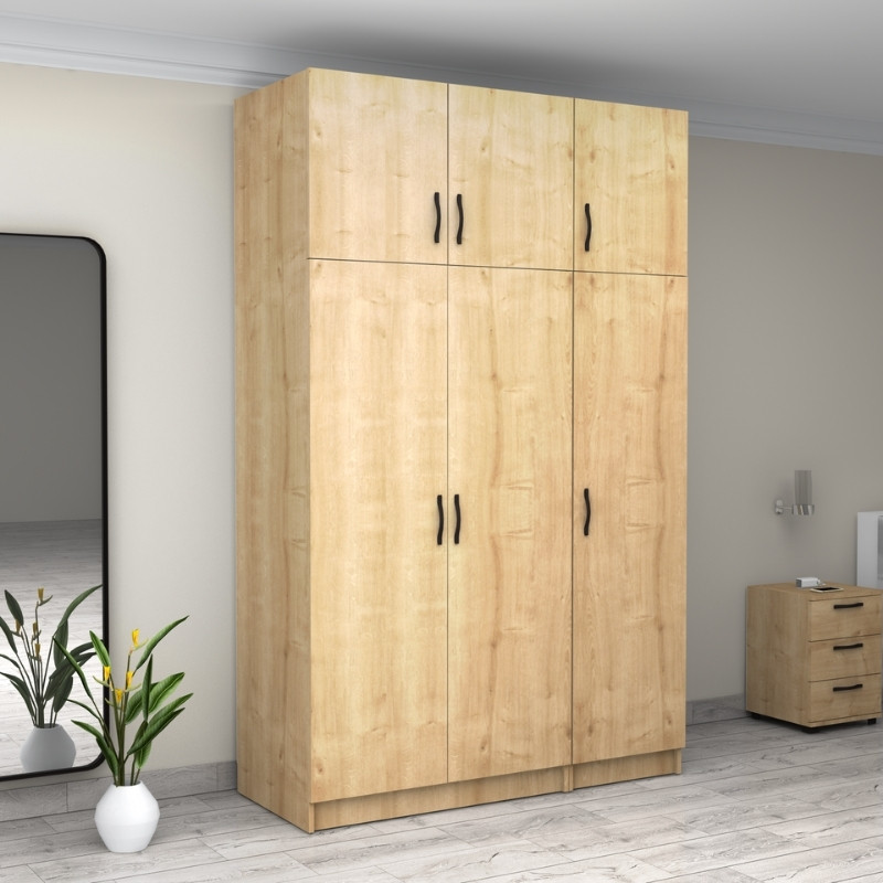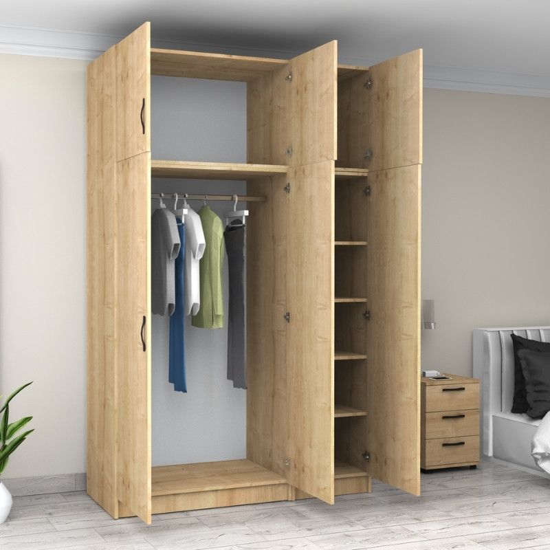 Ντουλάπα ρούχων Victoria Megapap τρίφυλλη με πατάρι χρώμα φυσικό οξιάς 150x60x240εκ.