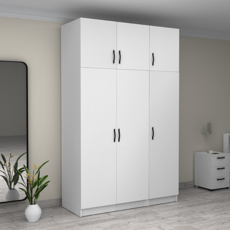 Ντουλάπα ρούχων Victoria Megapap τρίφυλλη με πατάρι χρώμα λευκό 150x60x240εκ.