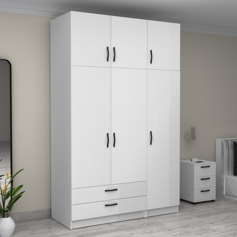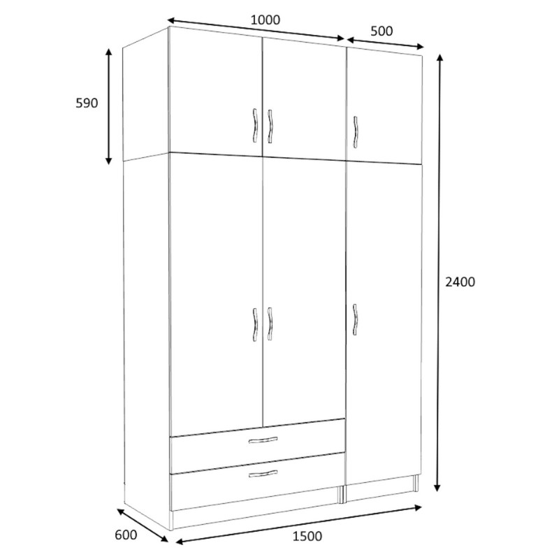Ντουλάπα ρούχων Victoria Megapap τρίφυλλη με πατάρι και συρτάρια χρώμα λευκό 150x60x240εκ.