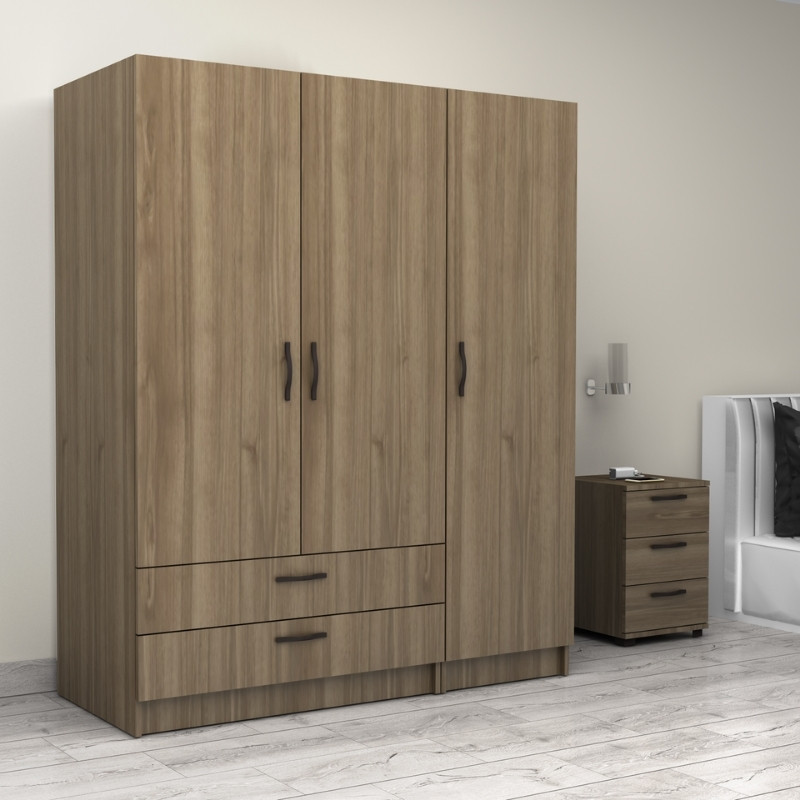 Ντουλάπα ρούχων Victoria Megapap τρίφυλλη με συρτάρια χρώμα καρυδί 150x60x181εκ.