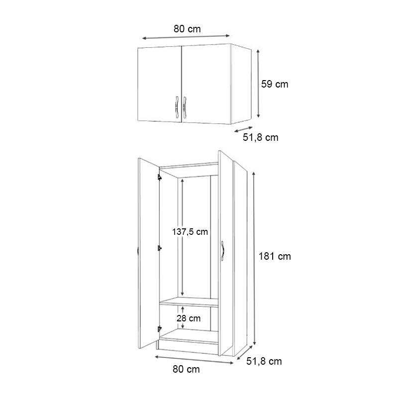 - Διαστάσεις ντουλάπας: Μήκος 80 x Βάθος 51,8 x Ύψος 181 εκ.