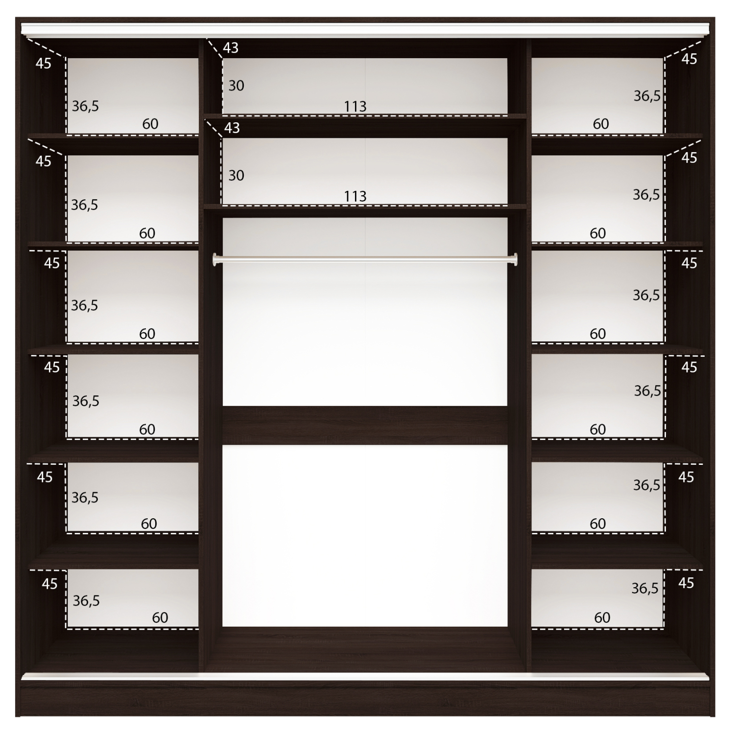 Διαστάσεις Ραφιού κέντρο: 113x43x30 εκ. (x2)