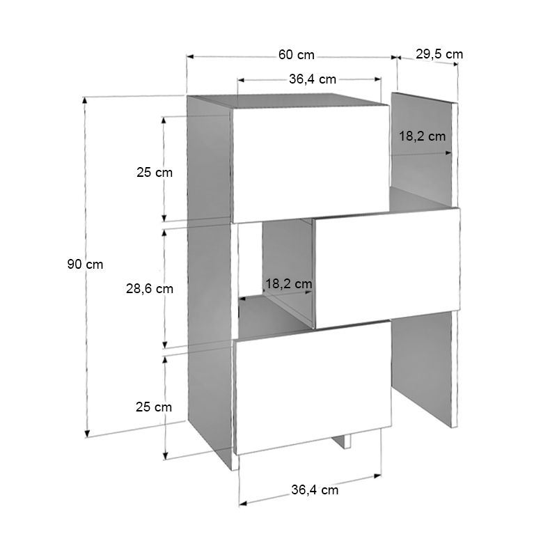 • Διαστάσεις: Μήκος 65 x Βάθος 31,5 x Ύψος 89,8 εκ.