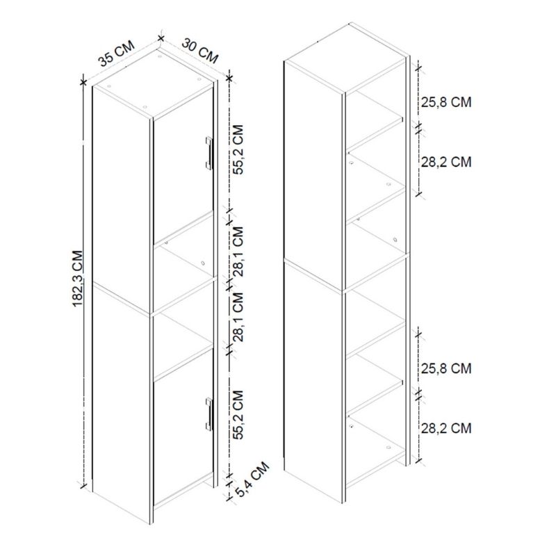 • Διαστάσεις: Μήκος 35 x Βάθος 30 x Ύψος 182,3 εκ.