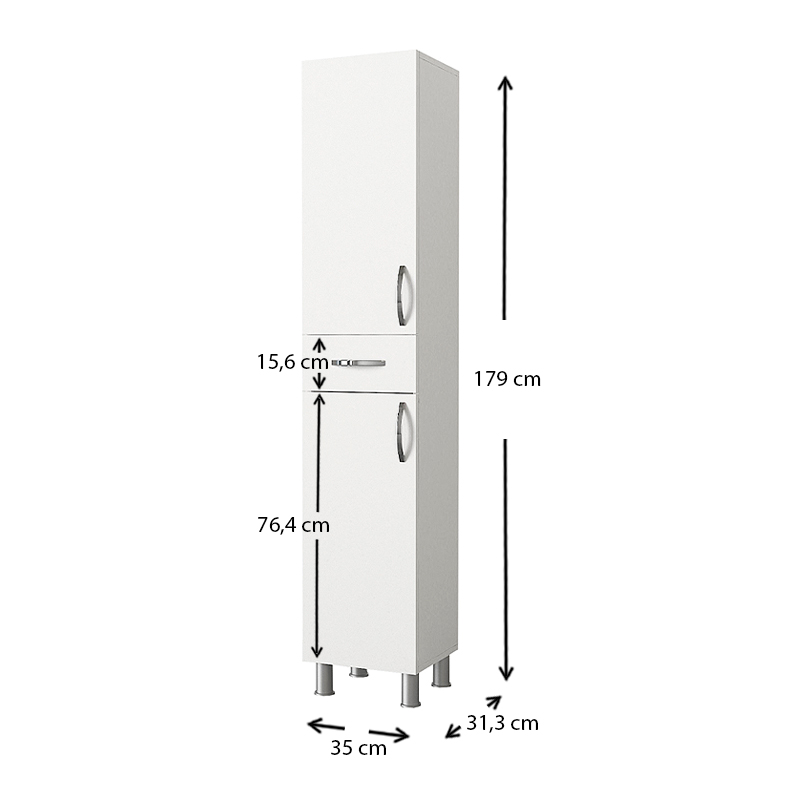 Ντουλάπι κουζίνας – μπάνιου Selina Megapap από μελαμίνη χρώμα λευκό 35x31x179εκ.