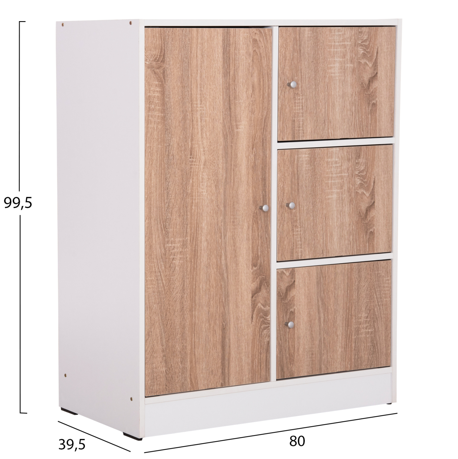 Σας αρέσει να είστε τακτοποιημένοι και καθαροί; Σας παρουσιάζουμε το χαμηλό ντουλάπι μελαμίνης MATIN σε χρώμα SONAMA ΟΑΚ και ΛΕΥΚΟ. Διαθέτει 4 ντουλάπια με μεγάλη χωρητικότητα ως χώρος γενικής αποθήκευσης διάφορων αντικειμένων. Συγκεκριμένα, στην μια πλευρά υπάρχει το ένα ντουλάπι (μονό), και στην άλλη 3 μικρότερα. Ιδανικό για πληθώρα χώρων και χρήσεων, όπως το παιδικό δωμάτιο κ.α.