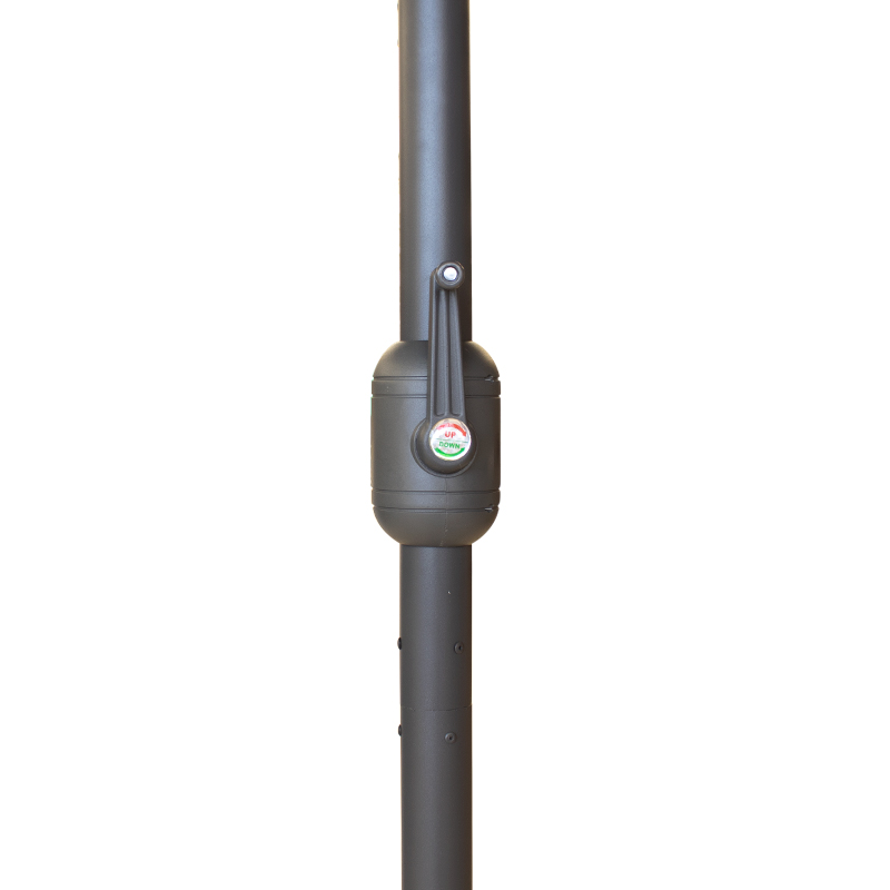 Στρογγυλή ομπρέλα αλουμινίου με δύο συστήματα ανοίγματος με μανιβέλα και ενισχυμένο σχοινί ανοίγματος. Ιδανική επιλογή για τον κήπο ή το μπαλκόνι σας αλλά και για επαγγελματική χρήση.