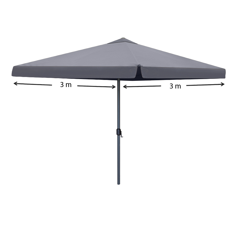 Τετράγωνη ομπρέλα αλουμινίου με δύο συστήματα ανοίγματος με μανιβέλα και ενισχυμένο σχοινί ανοίγματος. Ιδανική επιλογή για τον κήπο ή το μπαλκόνι σας αλλά και για επαγγελματική χρήση.