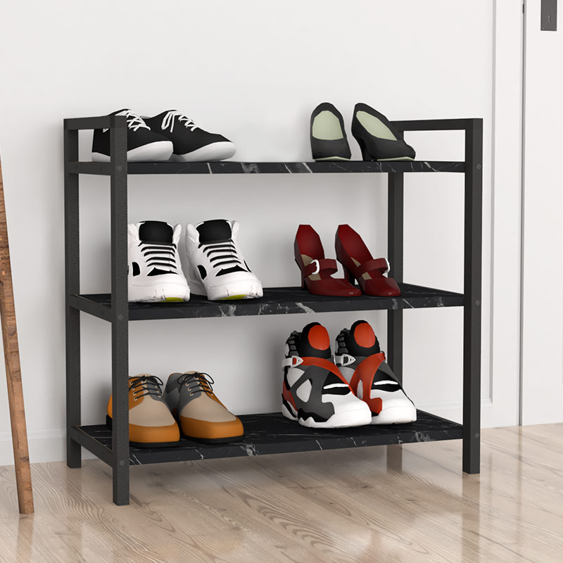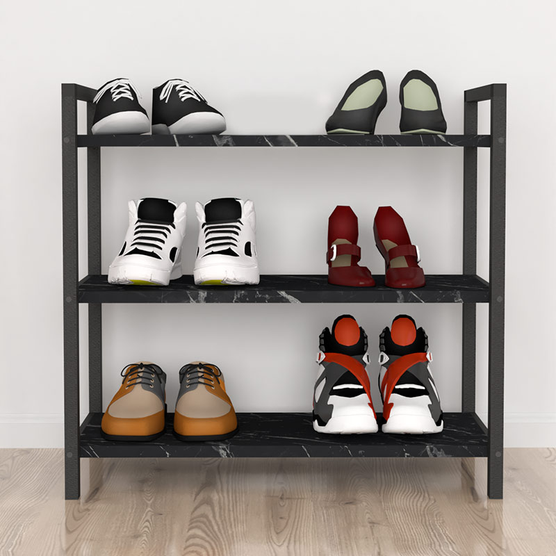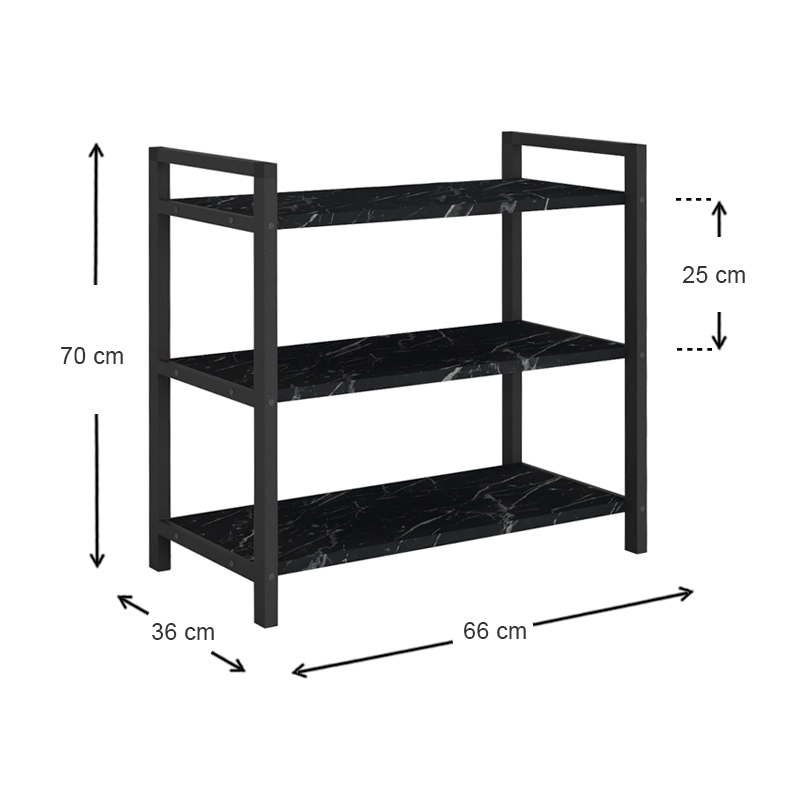 Παπουτσοθήκη Navari Megapap 9 ζευγών μεταλλική – μελαμίνης χρώμα μαύρο εφέ μαρμάρου 66x36x70εκ.