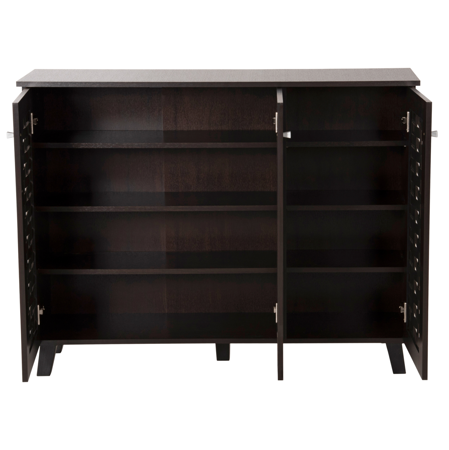 Σας παρουσιάζουμε την παπουτσοθήκη-ντουλάπι μελαμίνης PRODY σε WENGE χρώμα. Πρόκειται για ένα ντουλάπι με 2 ξεχωριστούς χώρους με 4 ράφια αποθήκευσης, και κλείνει με 3 πόρτες με μεταλλικά κυβάκια χερούλια. Μια διπλή πόρτα για τον μεγαλύτερο χώρο, και μια μονή πόρτα για τον μικρότερο χώρο. Το χαρακτηριστικό είναι ότι το κάθε επίπεδο και στους δύο χώρους, έχει διαφορετικό ύψος για να σας βοηθάει να τακτοποιείτε τα παπούτσια σας ανάλογα με το ύψος τους. Σκοπός μας είναι να σας βοηθήσουμε να οργανώσετε και να βελτιώσετε με τον καλύτερο δυνατό τρόπο οτιδήποτε θελήσετε.