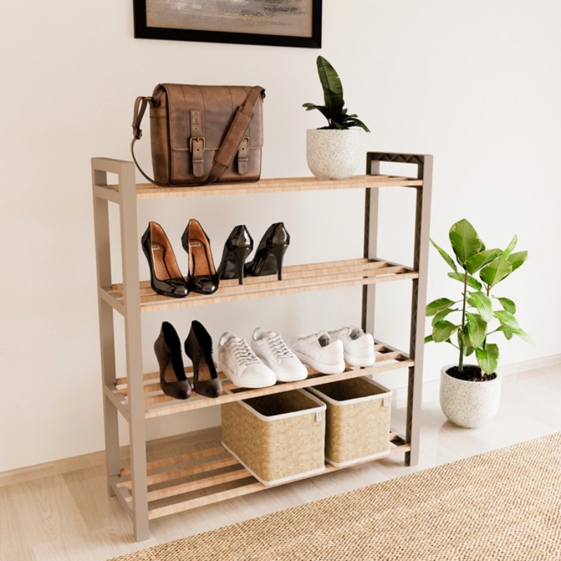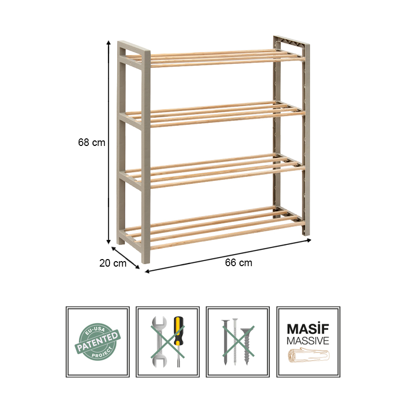 Παπουτσοθήκη ξύλινη – πλαστική χρώμα φυσικό – μπεζ 66x20x68εκ.