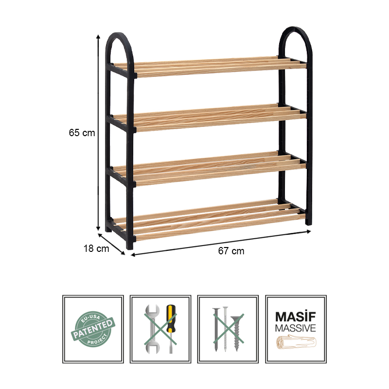 Παπουτσοθήκη ξύλινη χρώμα φυσικό – μαύρο 67x18x65εκ.