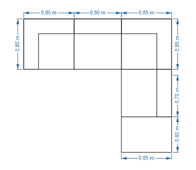 Σύστημα καναπέ αποτελούμενο από πέντε (5) τεμάχια, με δυνατότητα πολλαπλής διάταξης και τοποθέτησης στο χώρο σας. Με ενσωματωμένο το μαξιλάρι πλάτης στο σκελετό.