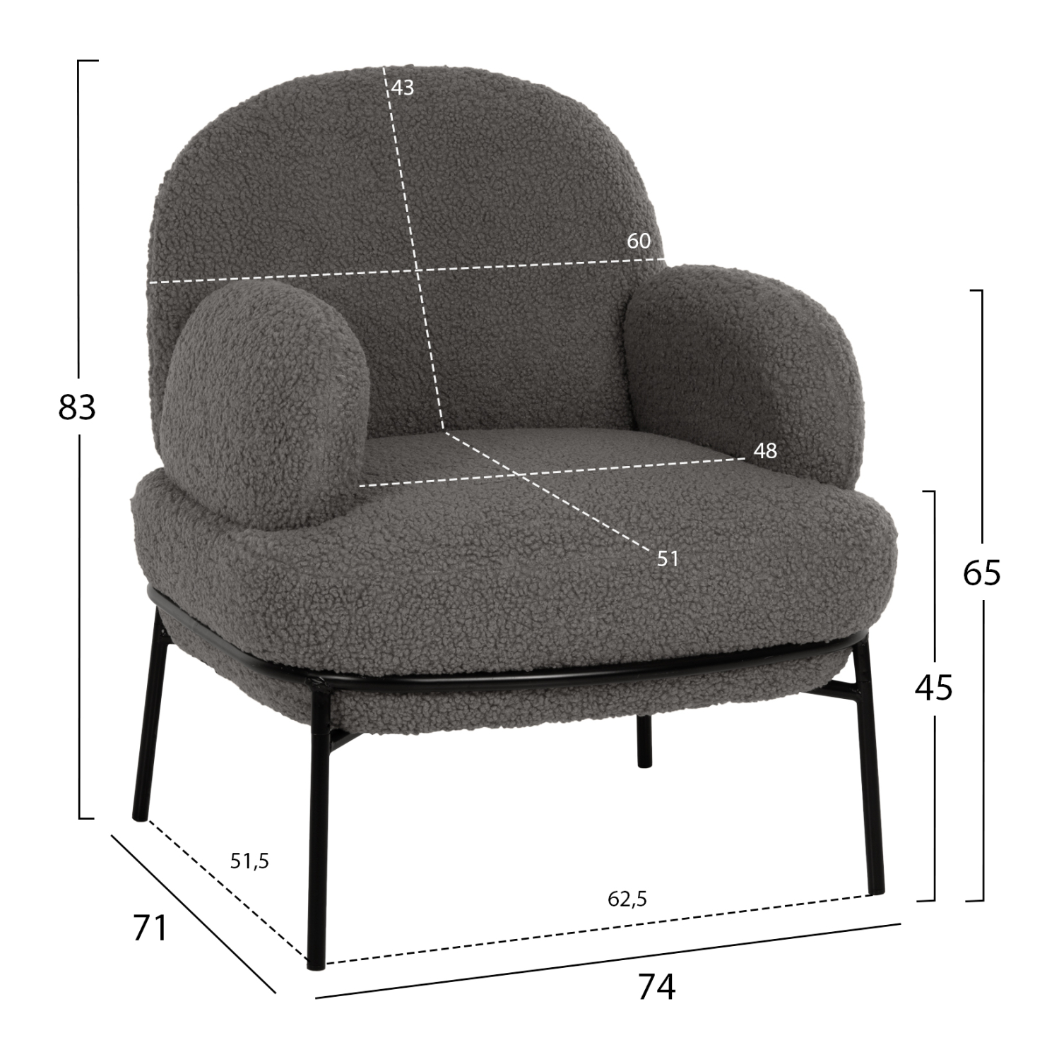 ΠΟΛΥΘΡΟΝΑ AGNES HM9525.21 ΓΚΡΙ ΜΠΟΥΚΛΕ-ΜΑΥΡΑ ΜΕΤΑΛΛΙΚΑ ΠΟΔΙΑ 74x71x83Υεκ.