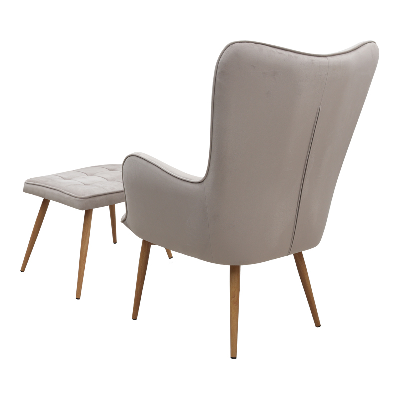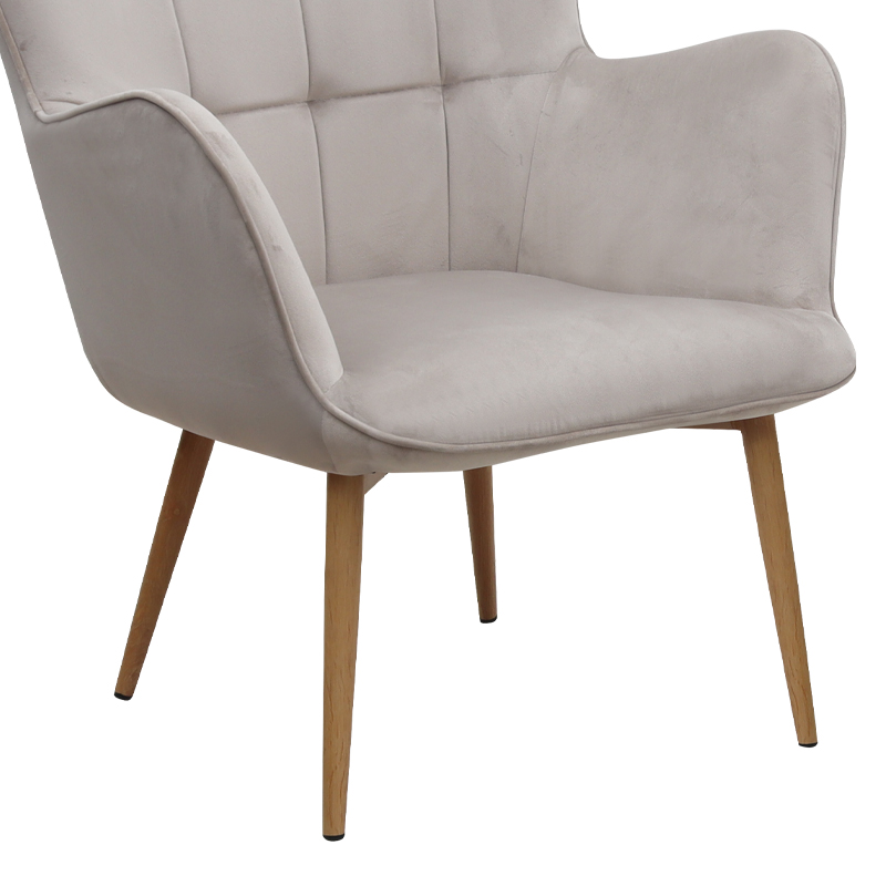 Η μπερζέρα με υποπόδιο Lily σε μπεζ βελούδο είναι ένα statement κομμάτι που φέρνει στο χώρο σας ζεστασιά, κομψότητα και απόλυτη άνεση. Η πλάτη τύπου “wingback” αγκαλιάζει το σώμα προσφέροντας εργονομική στήριξη, ενώ το απαλό βελούδινο ύφασμα αναδεικνύει το design και δημιουργεί αίσθηση πολυτέλειας. Οι καπιτονέ ραφές στην πλάτη και στο υποπόδιο ενισχύουν τον χαρακτήρα της πολυθρόνας και χαρίζουν μια διαχρονική, εκλεπτυσμένη εικόνα. Τα πόδια σε φυσική απόχρωση ξύλου, κατασκευασμένα από ανθεκτικό μέταλλο, προσφέρουν σταθερότητα και ολοκληρώνουν το κομψό σύνολο. Μια ιδανική επιλογή για σαλόνια, υπνοδωμάτια, ή ακόμα και κομψούς επαγγελματικούς χώρους, που θα τραβήξει σίγουρα τα βλέμματα και θα αναβαθμίσει την αισθητική κάθε περιβάλλοντος.